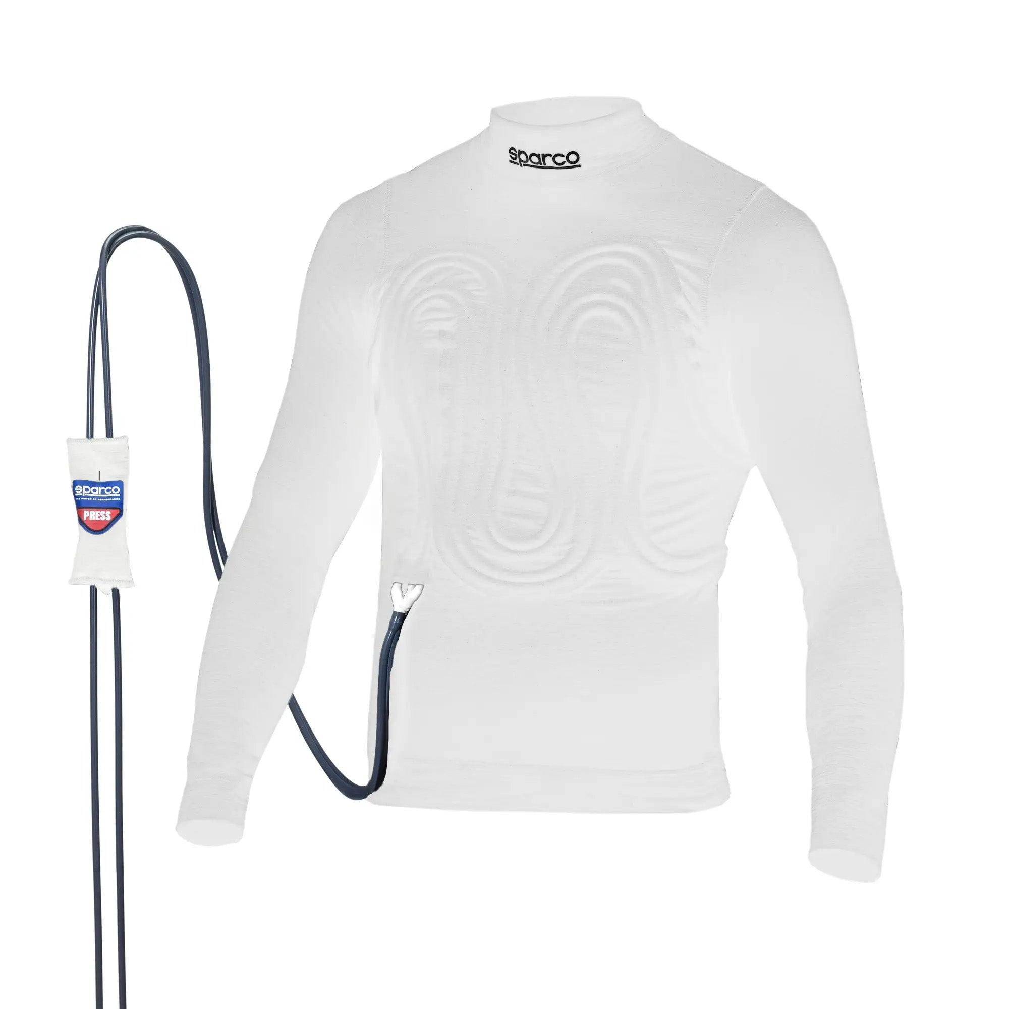 Underställ Tröja Cooling System Front/Back från Sparco är ett avancerat och FIA- samt SFI-godkänt flamskyddat plagg, utvecklat för förare som kräver maximal temperaturkontroll under tävling. Systemet är integrerat i plagget och består av ultra flexibla och tunna mikrorör placerade över förarens överkropp för effektiv kylning.