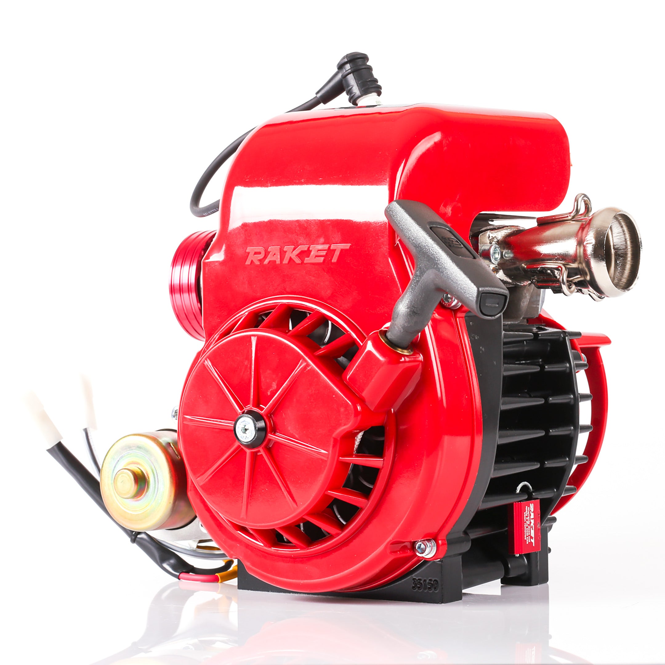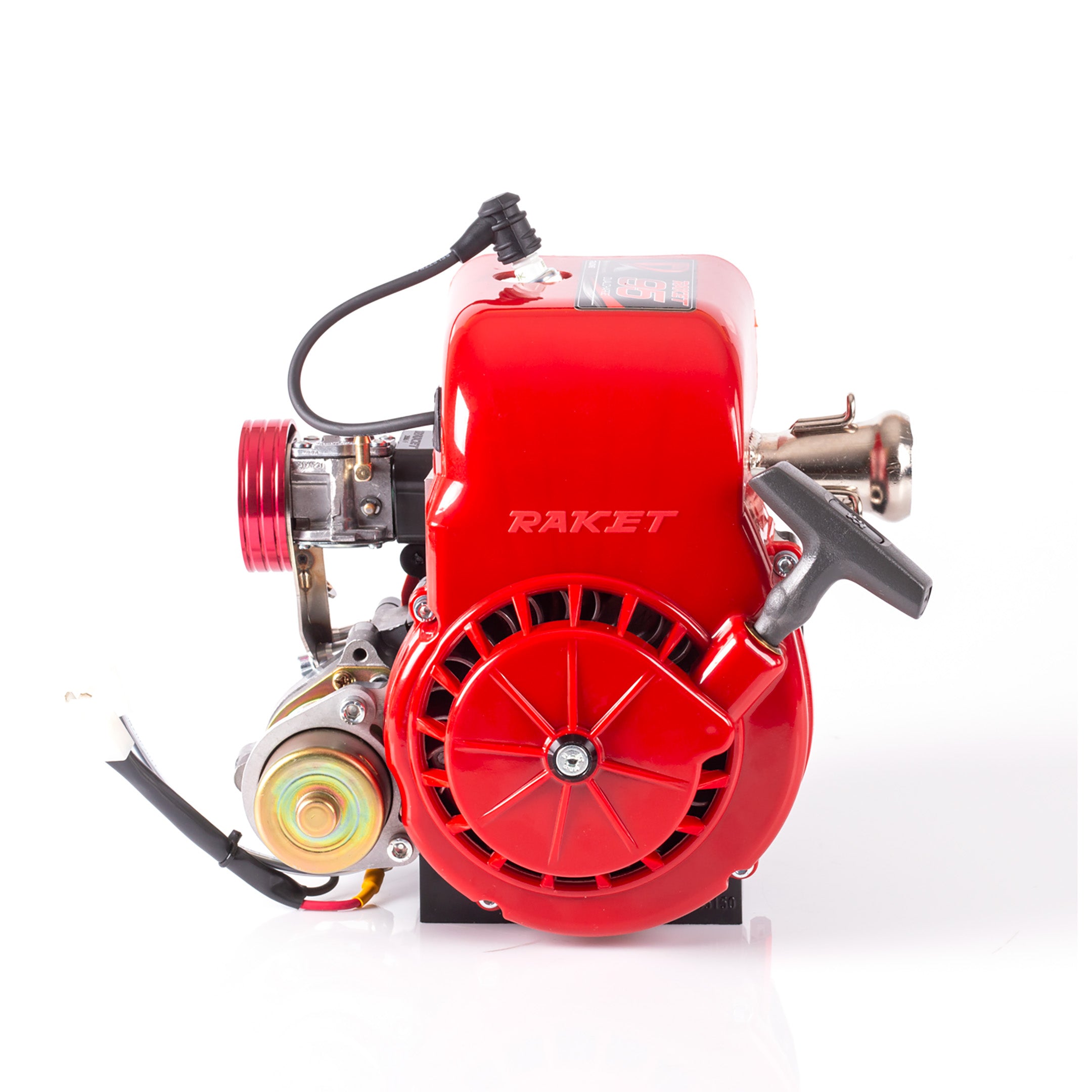 Motorn är utrustad med inbyggd elstart som enkelt aktiveras med Raket Original Batterikit, monterat direkt på karten. För extra trygghet finns även en manuell snörstart (magnapul) som extra tillval, som garanterar att du alltid kan starta motorn, även om batteriet skulle svikta.